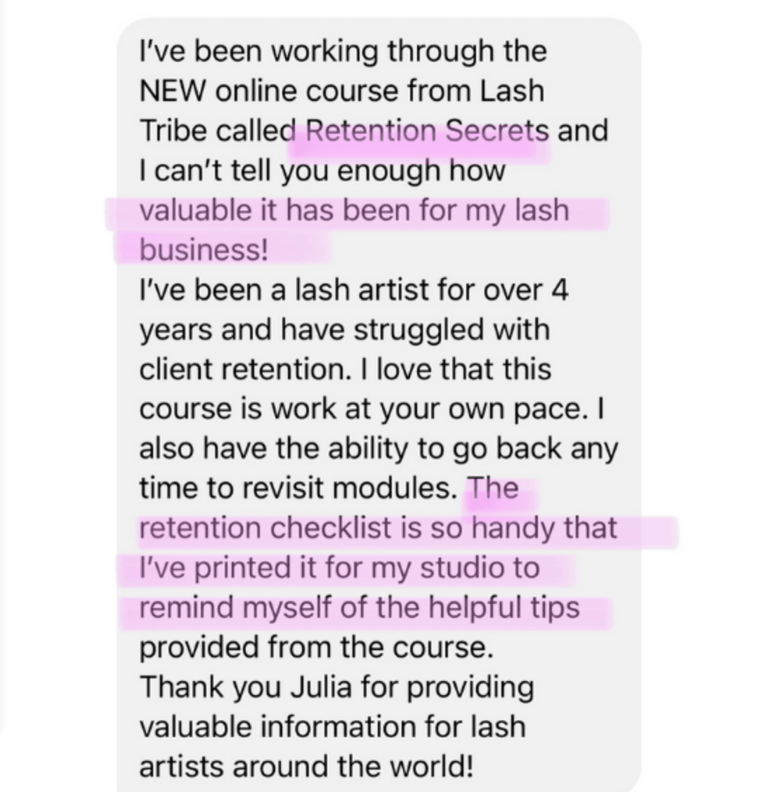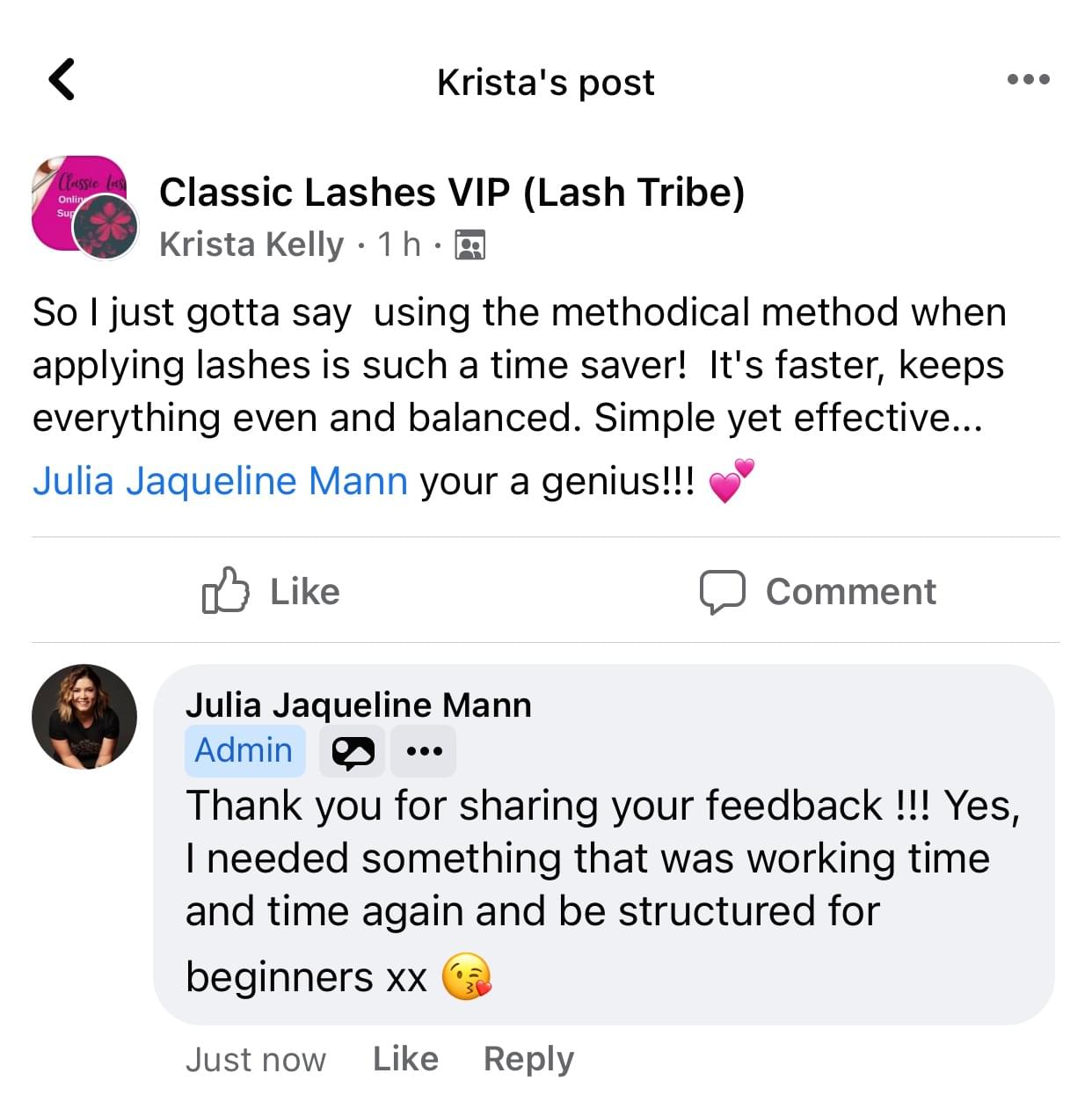 24/7 access to all of our online lash courses by Lash Tribe on SKOOL. Monthly Q & A' s with Julia and other members.